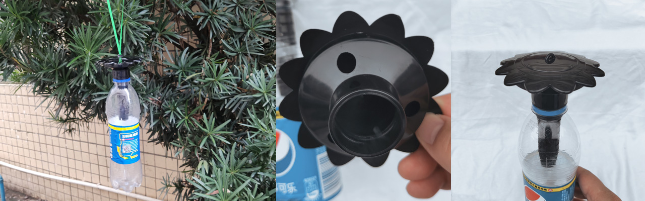 Special flower shaped top turns an empty soda bottle into a handy, affordable and safe hornet, yellow jacket and wasp trap. Just add a little regular or non-diet soda, beer, or sugar water.
