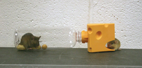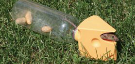 Mice enter the cheese shaped entrance and are humanely caught unharmed inside the bottle. Once caught the mouse feels very comfortable and safe inside the bottle, becomes relaxed and nibbles on bait and often falls asleep.
